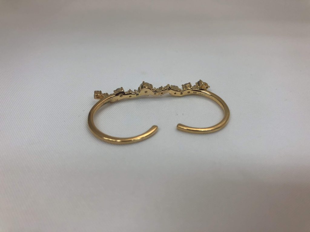 2本の指に入れるタイプの指輪が折れてしまったので直してほしいというご依頼でした。どうしても負荷がかかる部分なので、折れやすいです。石も一つ、折れたところの部分がなくなってしまってました。